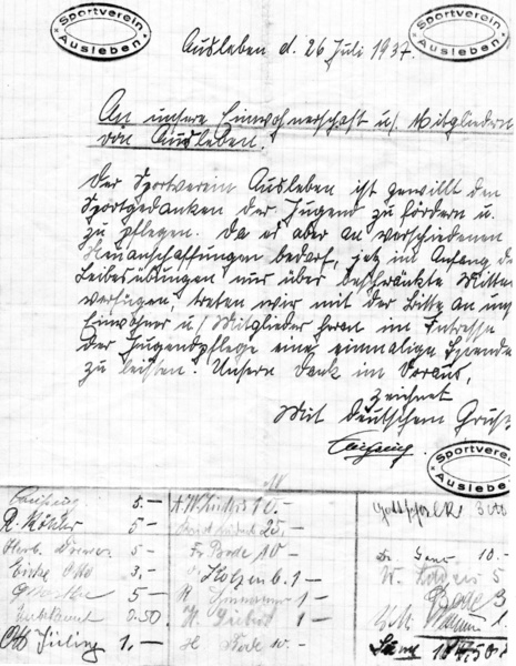 1937, kurz vor dem 2. Weltkrieg, wurde im NS-Verein "Germania" organisiert Fußball gespielt. Dabei gelang 1939 einer Juniorenmannschaft nach erfolgreichen Ausscheidungsspielen im Endspiel in