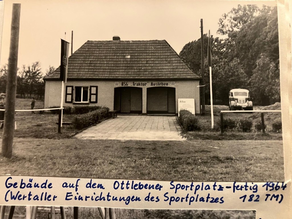 1951 - Laut dem Schreiben an die Landesleitung Sachsen Anhalt der Sportvereinigung "Traktor" in Halle wurde die BSG "Traktor" Ausleben am 17.10.1951 reorganisiert und auf der Grundlage der BHG(VdgB) aufgebaut. Diese BSG "Traktor" war nun für die ganze, neu im Jahre 1950 entstandene Großgemeinde mit den Ortsteilen Ottleben, Ausleben, Warsleben und Üplingen verantwortlich.
